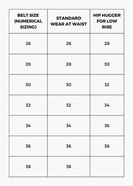 We recommend purchasing a belt at least two sizes up from your waist size. For example, if you are a size 36 waist, purchase a size 38 belt.