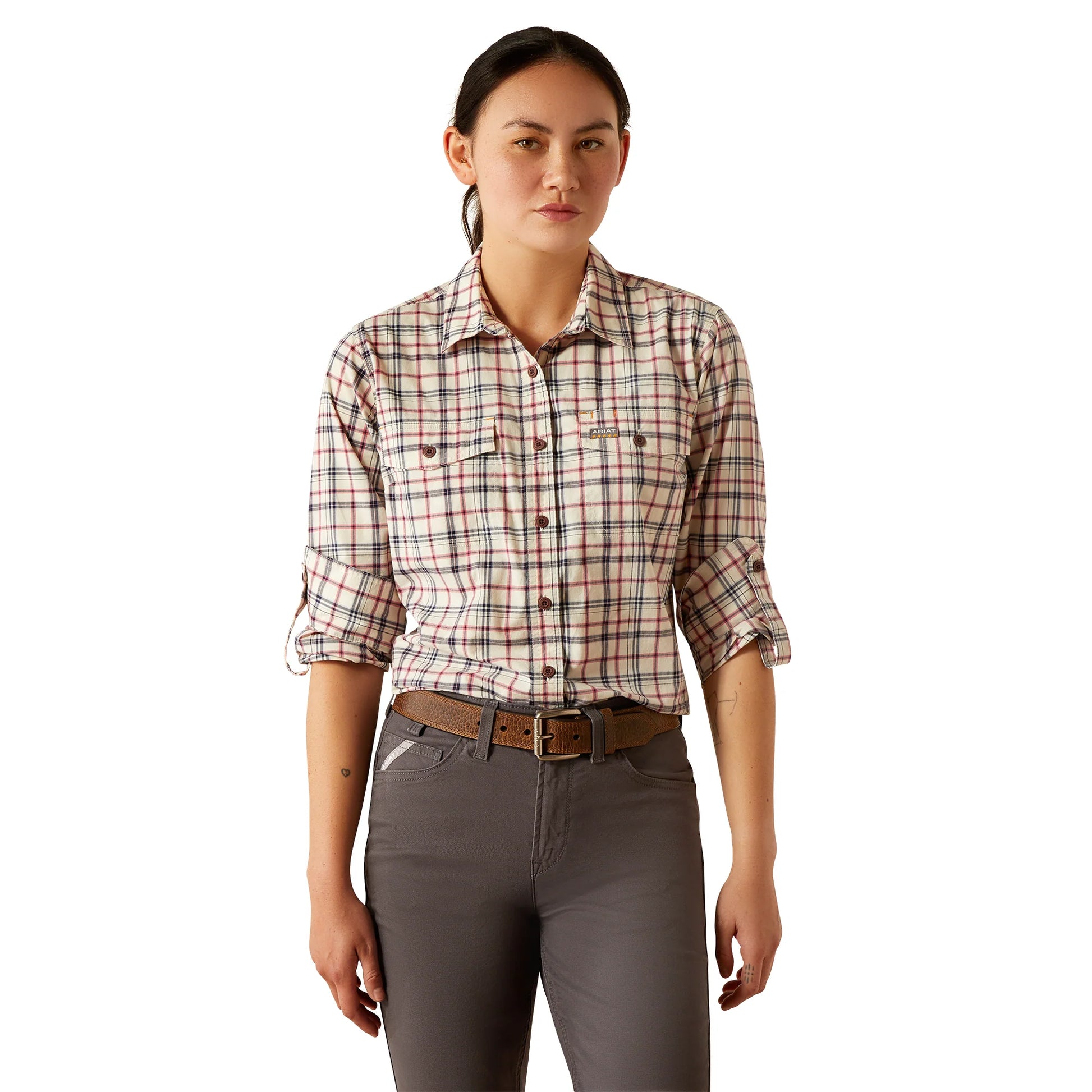 Ariat Womens Rebar Made Tough Durastretch Long Sleeve Work Shirt - Vanilla