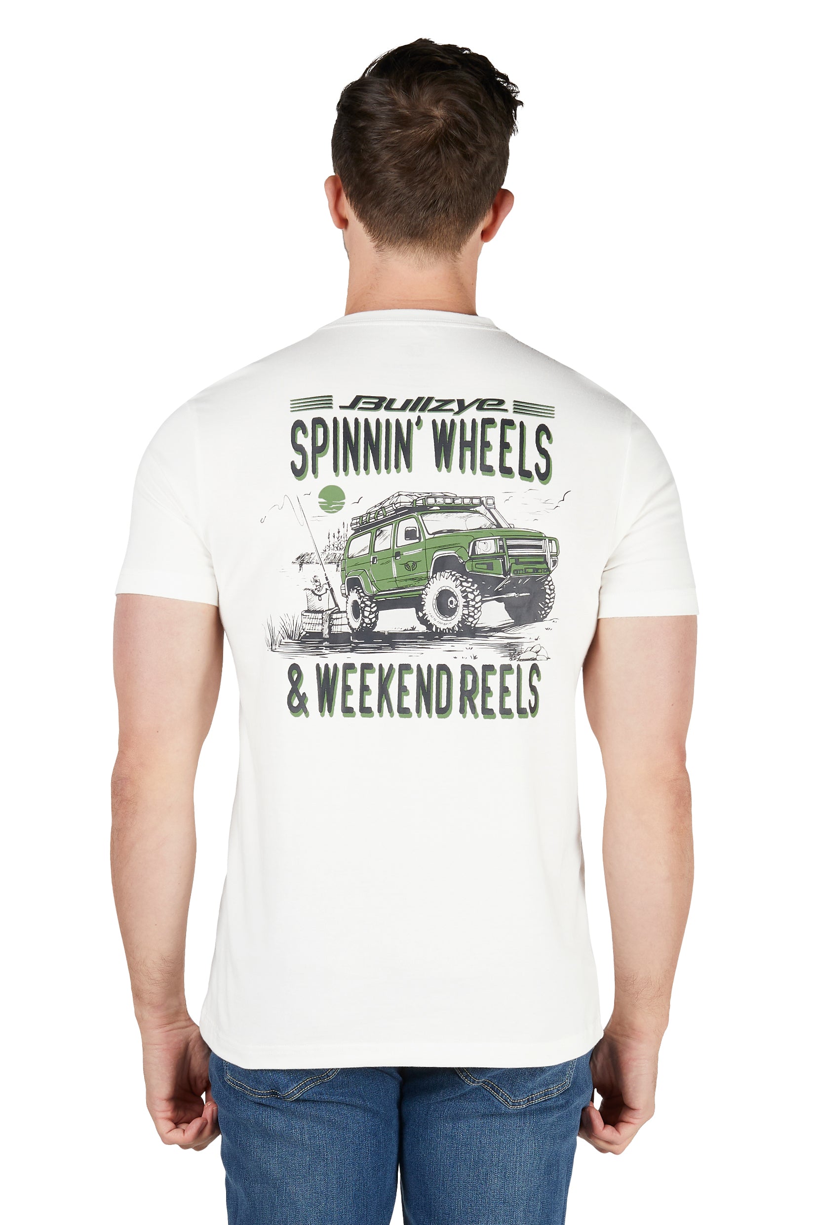 - Small chest print with large back feature print