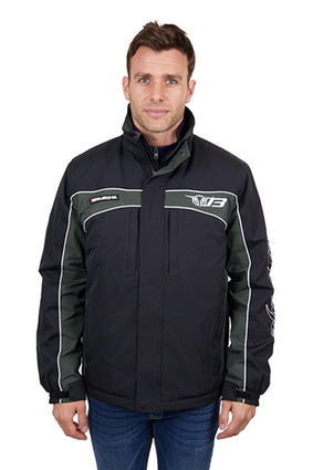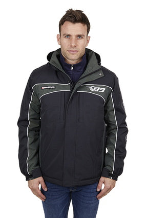 Seam sealed - fully waterproof jacket, polar fleece and half body quilted lining for warmth, contrast front, back and sleeve panelling with piping detail, contrast logo embroidery on chest, zippered chest pockets, zippered inseam welt pockets with polar fleece lining for warmth, internal chest pocket, adjustable sleeve tab, adjustable toggles at hem.