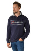 Heavy weight french terry pullover, 1/4 zip neck, cut and sew panel in front body, large front feature Bullzye embroidery, Bullzye back neck print, branded metal trims, rib hem band, cuffs and inner collar, logo label on sleeve