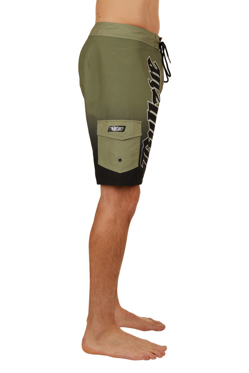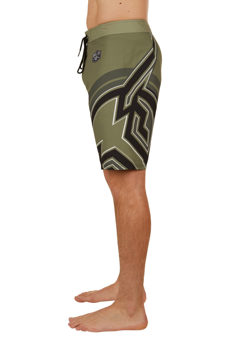 All over placement print, Structured waistband with contrast facing, Drawcord tie with metal ends, Zip fly, Patch pocket at side leg with velcro closure