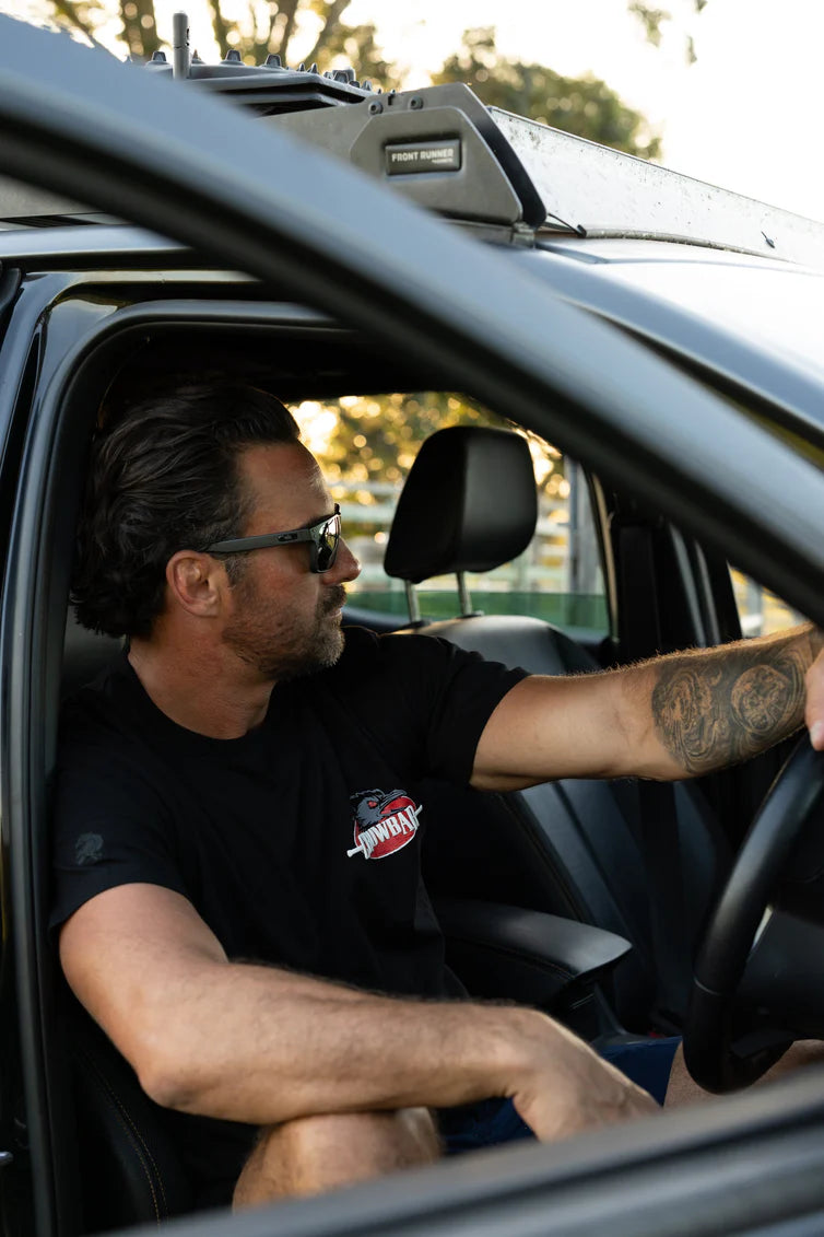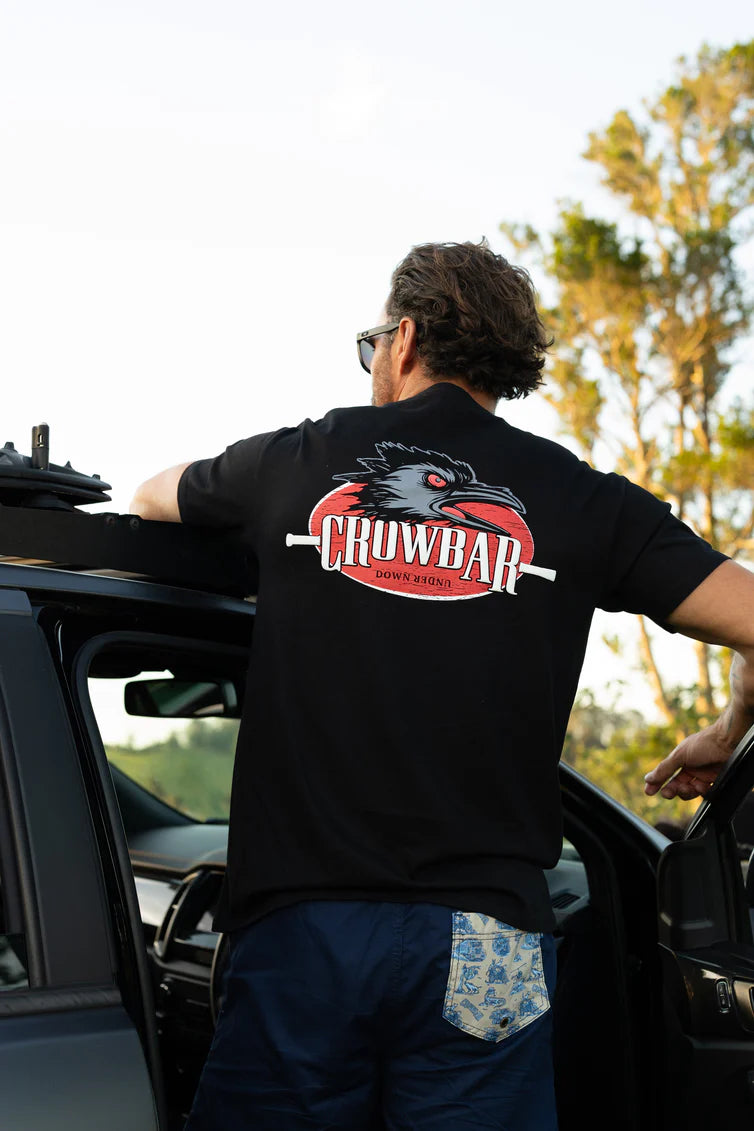 A bold Stone The Crows graphic inspired by classic Australian humour. Featuring Jack - the angry crow - brought to life with puff ink details and subtle embroidered finishes
