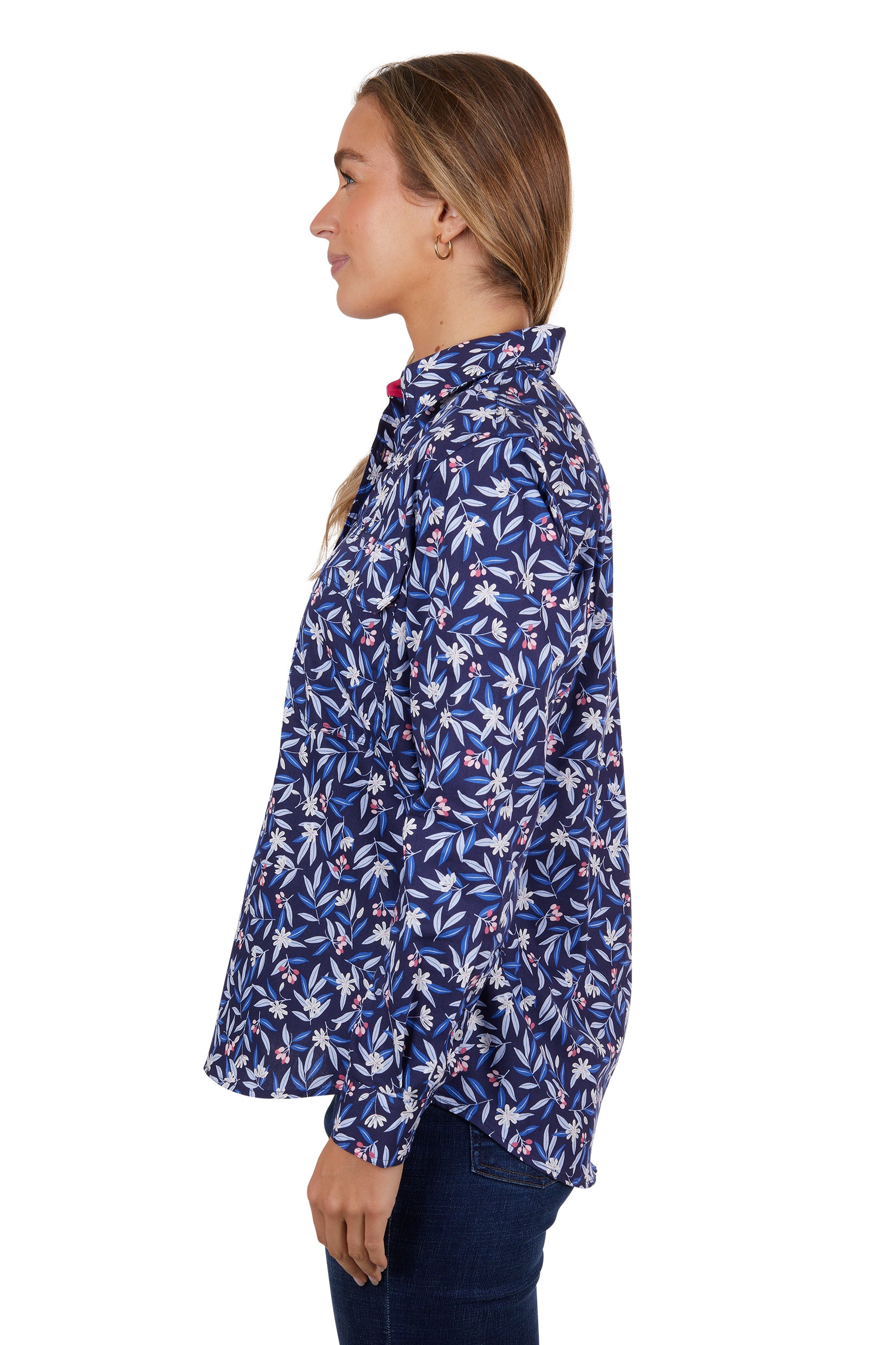 Half placket shirt, Front chest pockets, Contrast facings inside collar stand and sleeve cuffs, Logo button