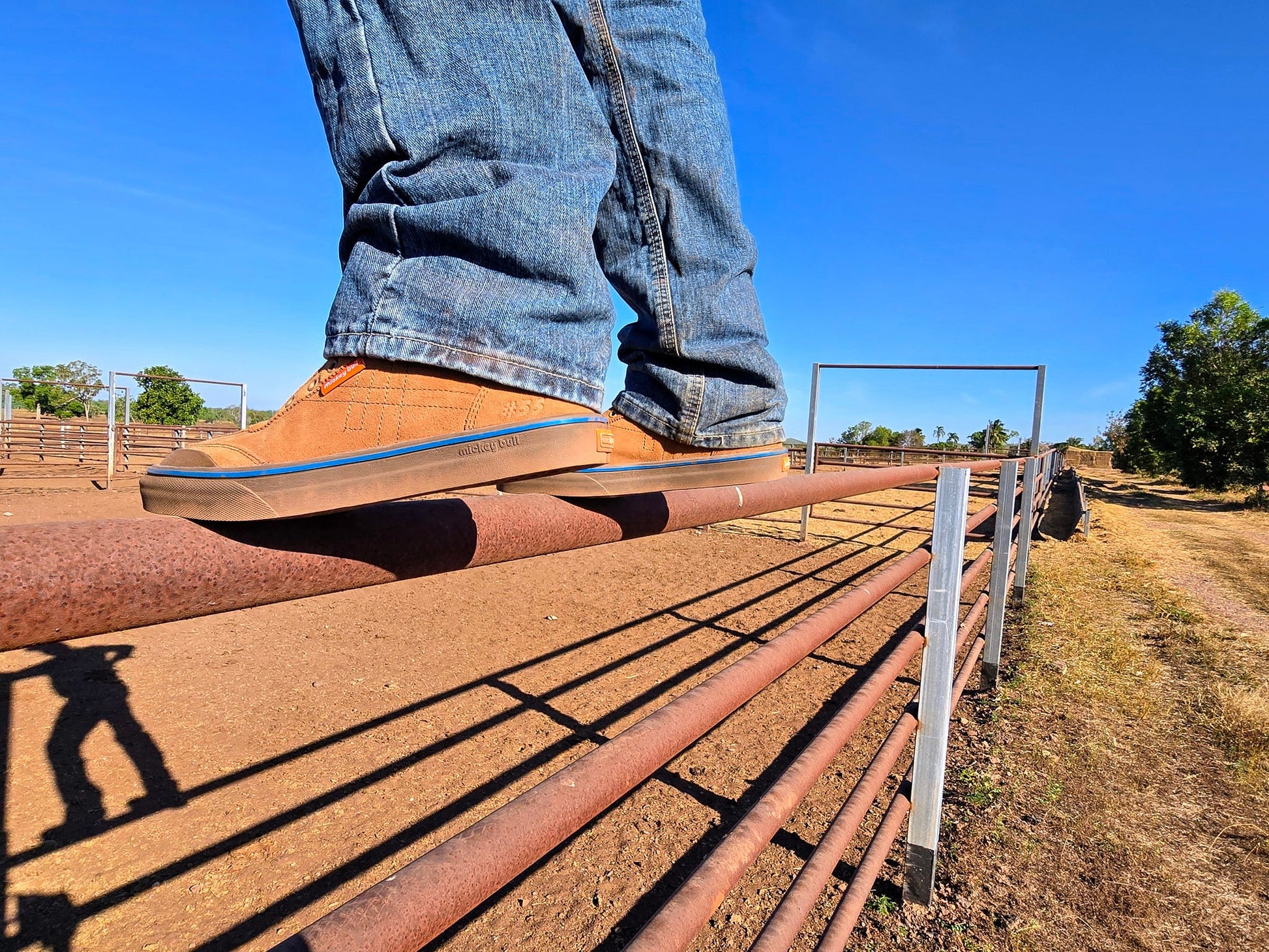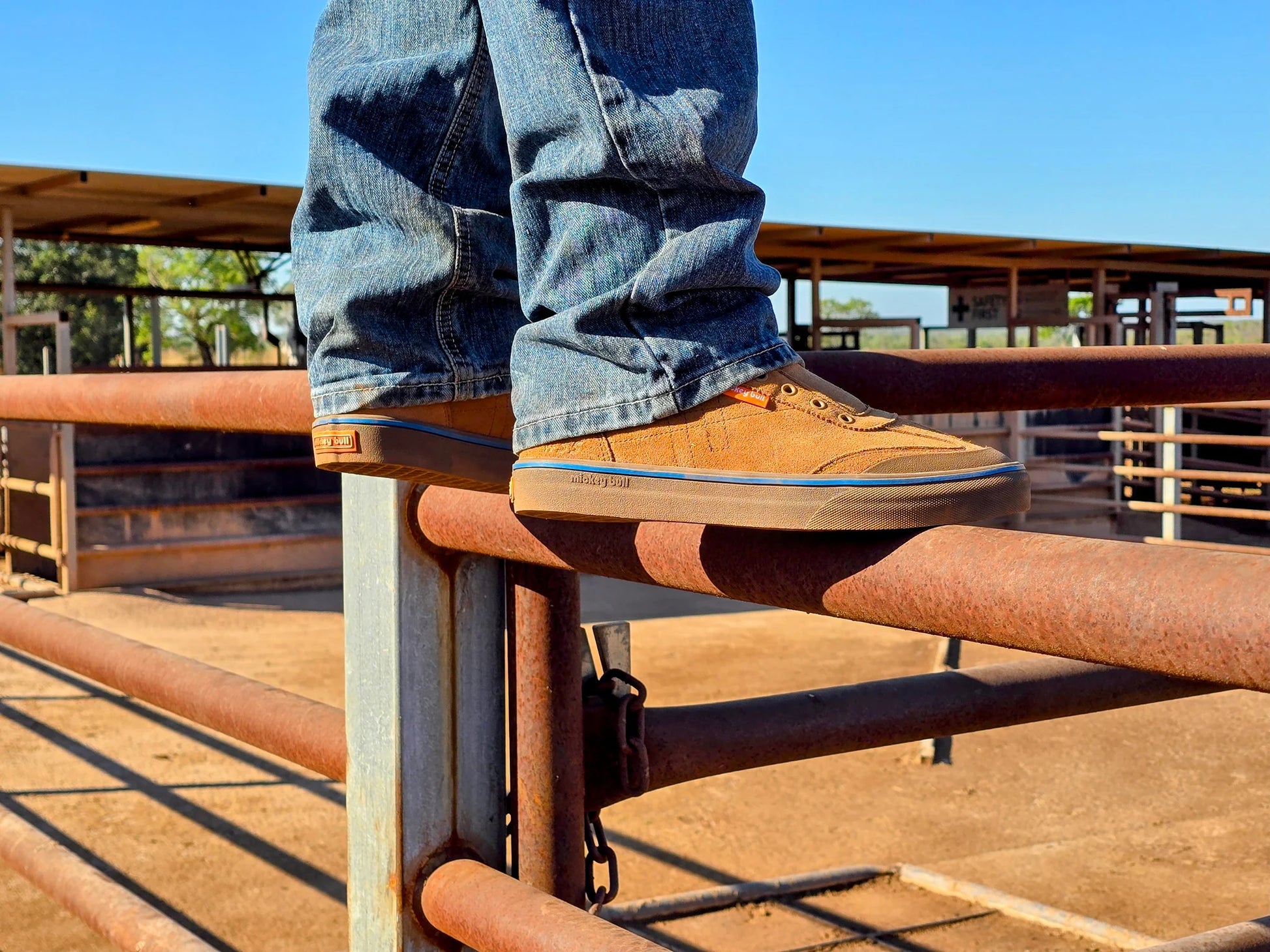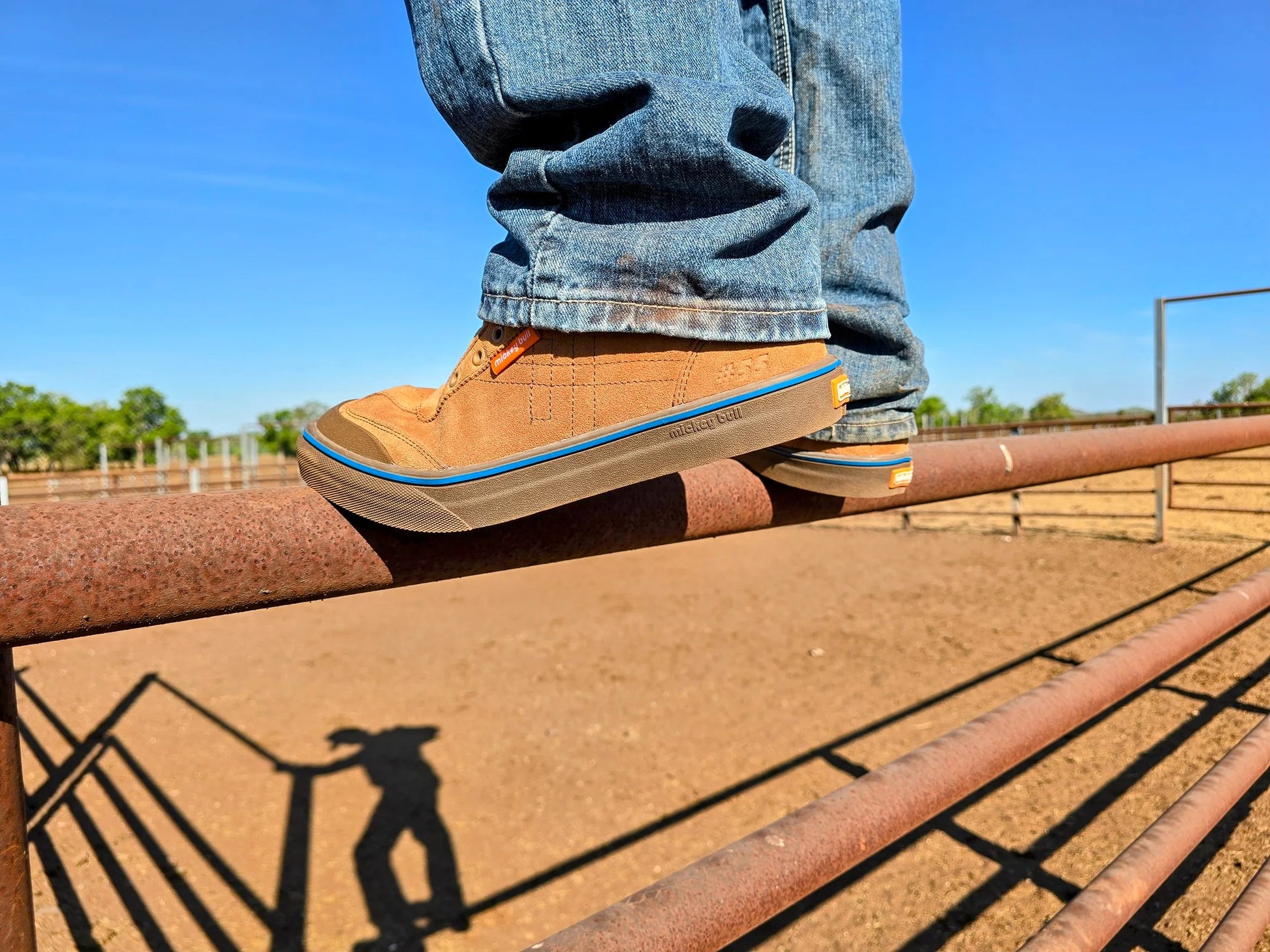 Durable, easy care roughout suede leather uppers matched with the next gen #55 mickey bull mesh-grip sole.