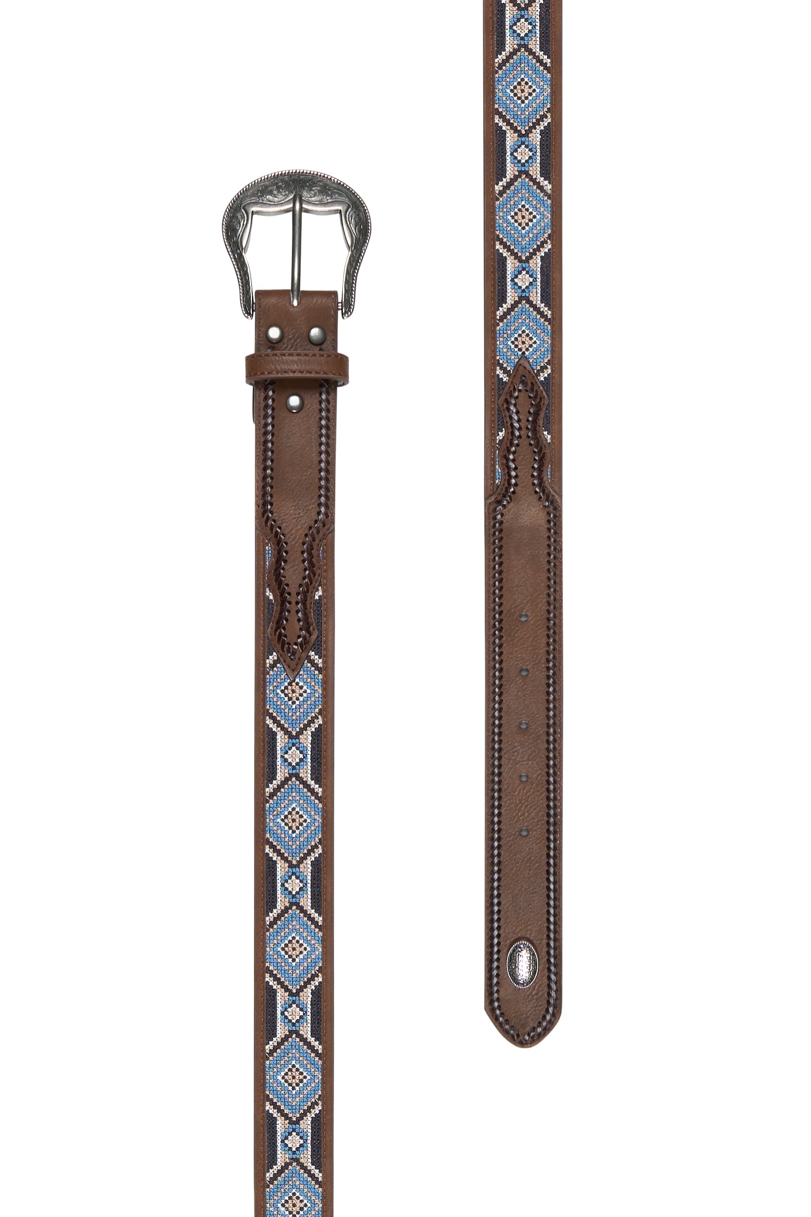 Basketweave tooled strap, handlace detail, removable buckle, Pure Western concho, antique silver hardware
