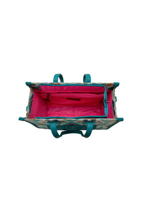 Aztec Pattern Print On Canvas, Front Pocket With Tooling And Logo Embroidery, Top Zip Closure, Detachable And Adjustable Printed Crossbody Strap, Contrast Handles, Internal Zip Pocket And Slip Pockets