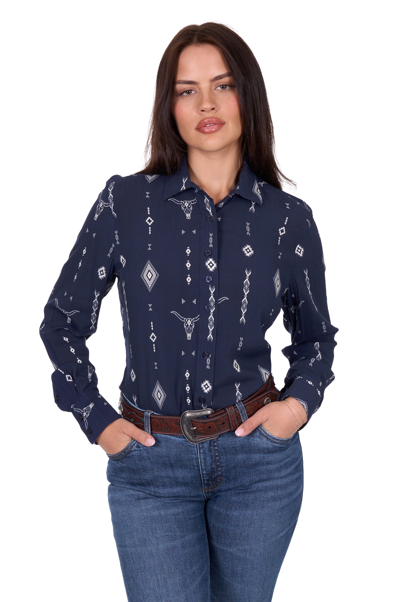 Classic button down long sleeve shirt, button closure, Wrangler® logo pip on side seam, soft handfeel and drape